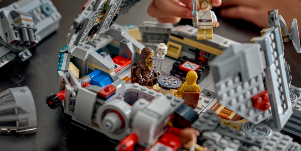 - El Halcón Milenario: Este modelo de 885 piezas lidera la nueva ola. Incluye cuatro minifiguras inteligentes: Han Solo, Chewbacca, C-3PO y Luke Skywalker. El set permite jugar al holochess y activar el salto al hiperespacio mediante sonidos envolventes.